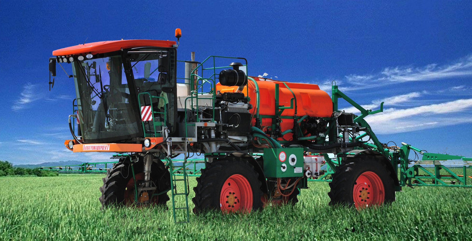 Самохідний обприскувач призначений для високопродуктивного внесення засобів захисту рослин. Високий кліренс машини дозволяє роботу на високих культурах, таких як кукурудза, соняшник, ріпак.
