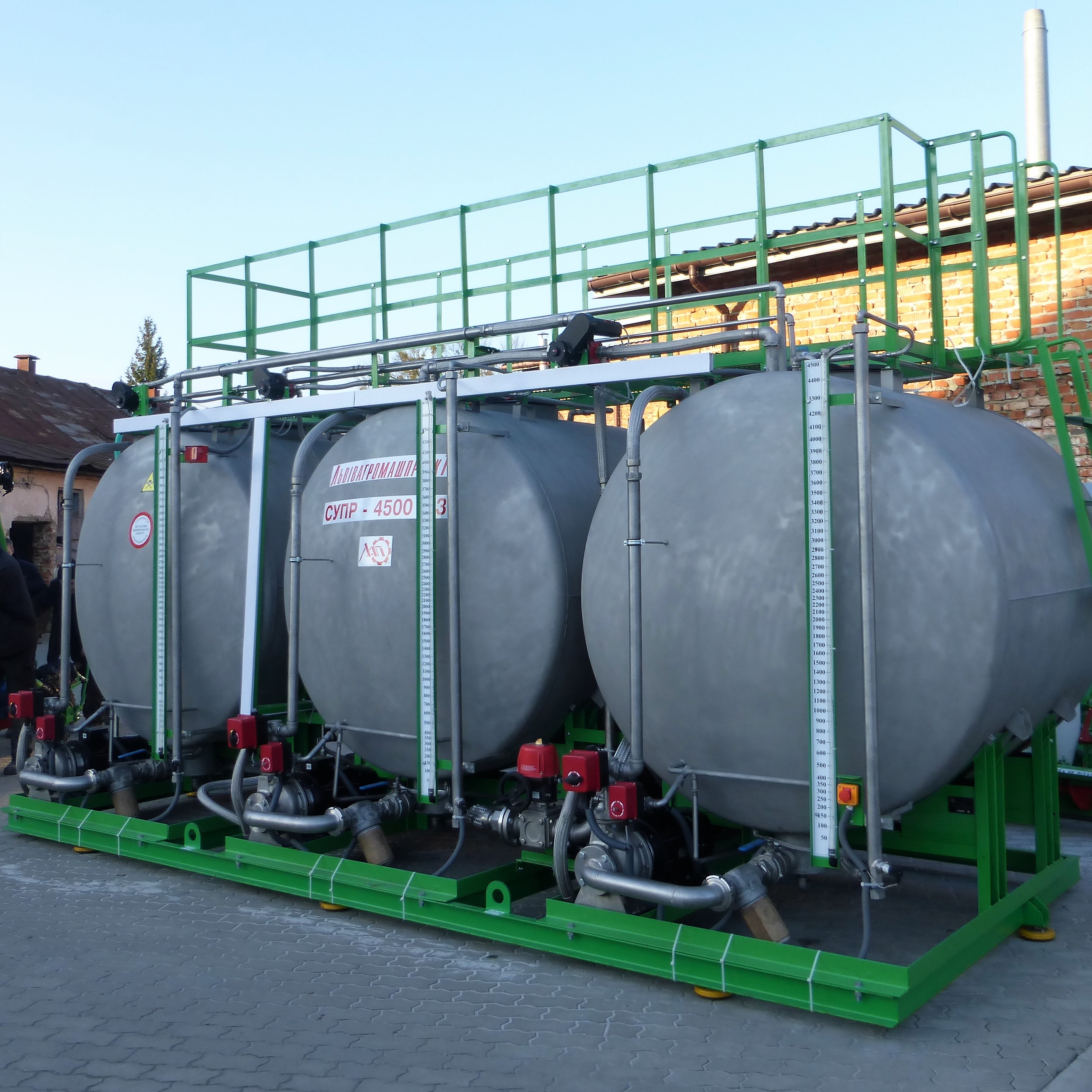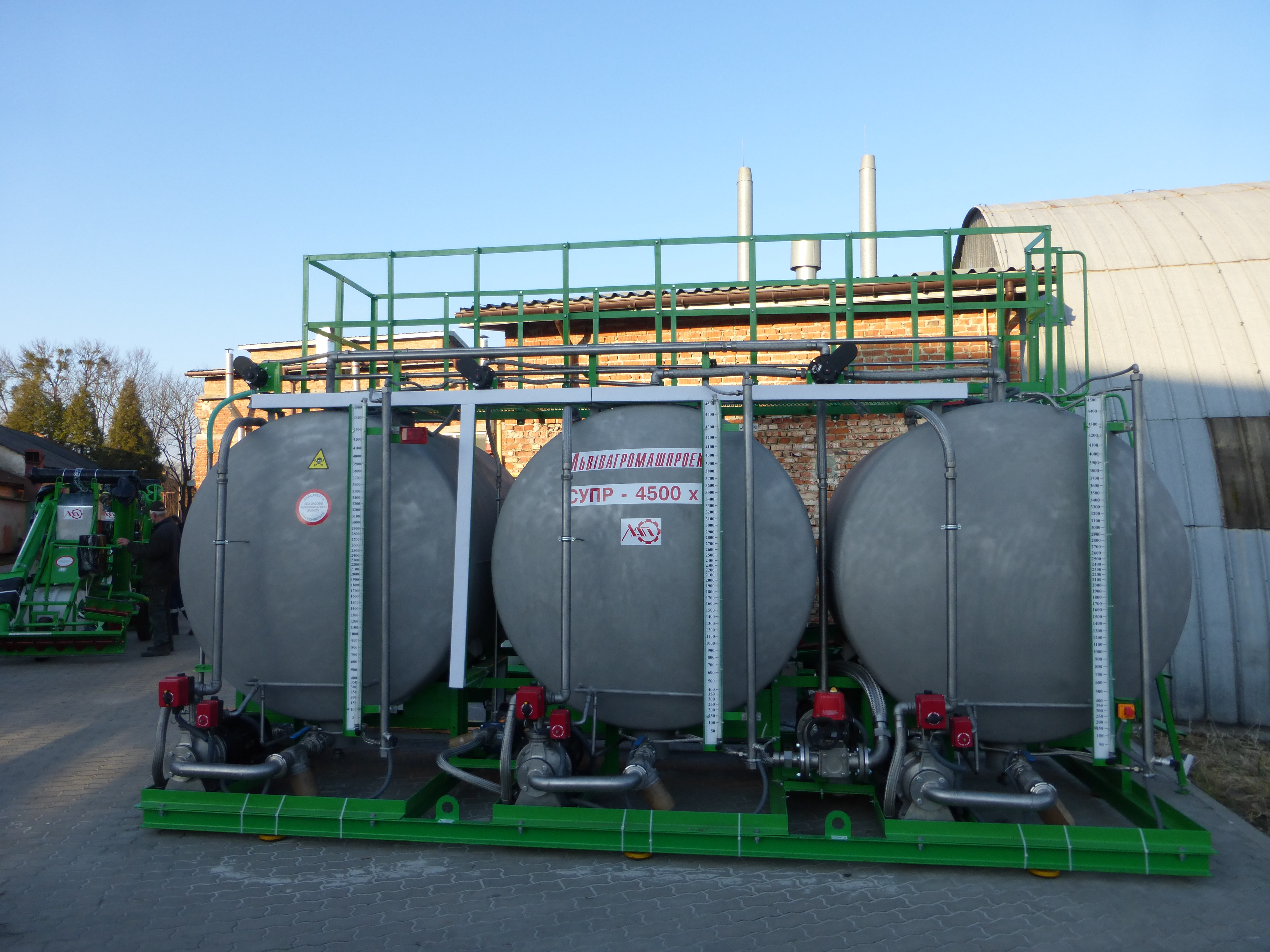 Стационарная установка приготовления рабочих растворов СУПР-4500х3 предназначена для приготовления рабочих растворов (пестицидов, фунгицидов, гербицидов и химических препаратов, являются водорастворимыми и используются в агрокомплексе и является утвержденным на территории Украины). Есть возможность хранения готового раствора и поддержания концентрации. Установка работает совместно или независимо от насос-дозатором химических препаратов типа QuantoFfil M. Управление установкой производится с операторской.